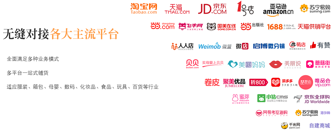全渠道訂單自動化處理 全渠道訂單統(tǒng)一收訂 訂單智能監(jiān)控,防止漏單、錯單 電子面單全面對接,每小時3000訂單輕松打 多平臺、多店鋪庫存統(tǒng)一管理 多平臺庫存自動同步,線上線下庫存同步 庫存數(shù)據(jù)自動更新,避免超賣 智能補(bǔ)貨,及時補(bǔ)貨備貨 各類賬目清晰明了 與供應(yīng)商、分銷商往來對賬清晰準(zhǔn)確 物流、快遞費(fèi)用自動結(jié)算 各平臺運(yùn)營數(shù)據(jù)輕松掌握,獨(dú)立核算